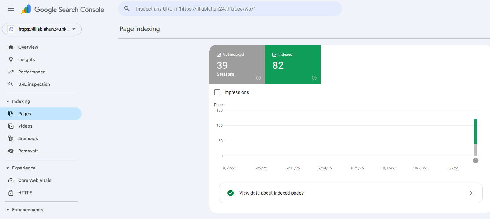 Kui öeldakse, et veebileht on indekseeritud, tähendab see, et otsingumootorid, näiteks Google, on lisanud teie veebilehe info oma andmebaasi ja võivad selle kuvada otsingutulemustes. Indekseerimine on oluline samm, sest ilma selleta ei saa leht ilmuda otsingus. Indekseerimine ja SEO optimeerimine töötavad koos, et tagada veebilehe parem nähtavus ja kergem leitavus.