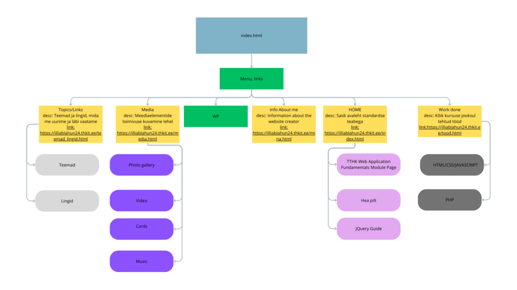 • ei kuva kõiki veebilehestiku lehti, vaid keskendub olulisematele funktsionaalsetele osadele;